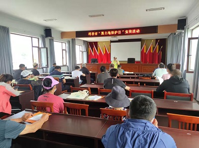 7月22日,珲春市农机推广站在杨泡乡开展“黑土地保护日” 宣传活动,工作人员开展黑土地保护法律法规宣传、黑土耕地质量保护措施宣传,提高公众主动护好用好黑土耕地的意识,在活动中共发放宣传材料100余份。